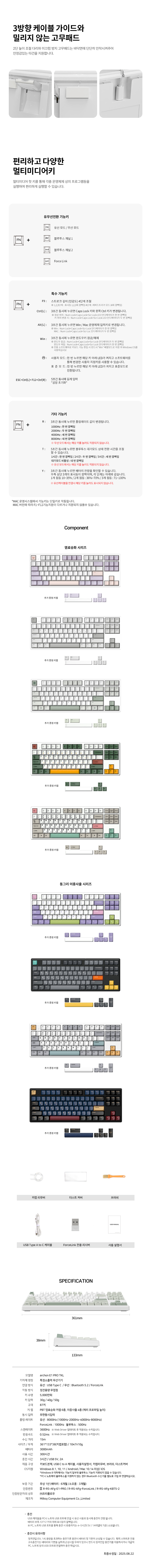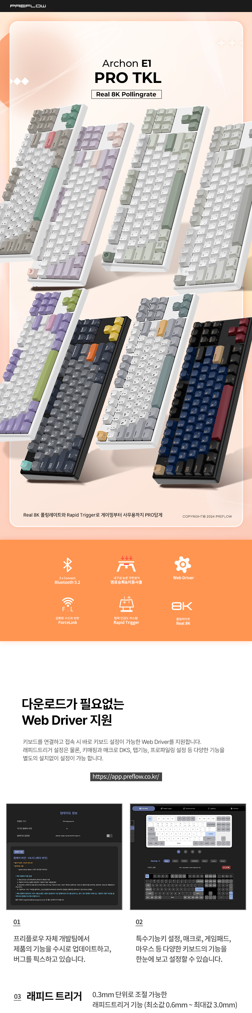 프리플로우 archon E1 PRO TKL 8K 저소음 무접점키보드 라벤더, 40G