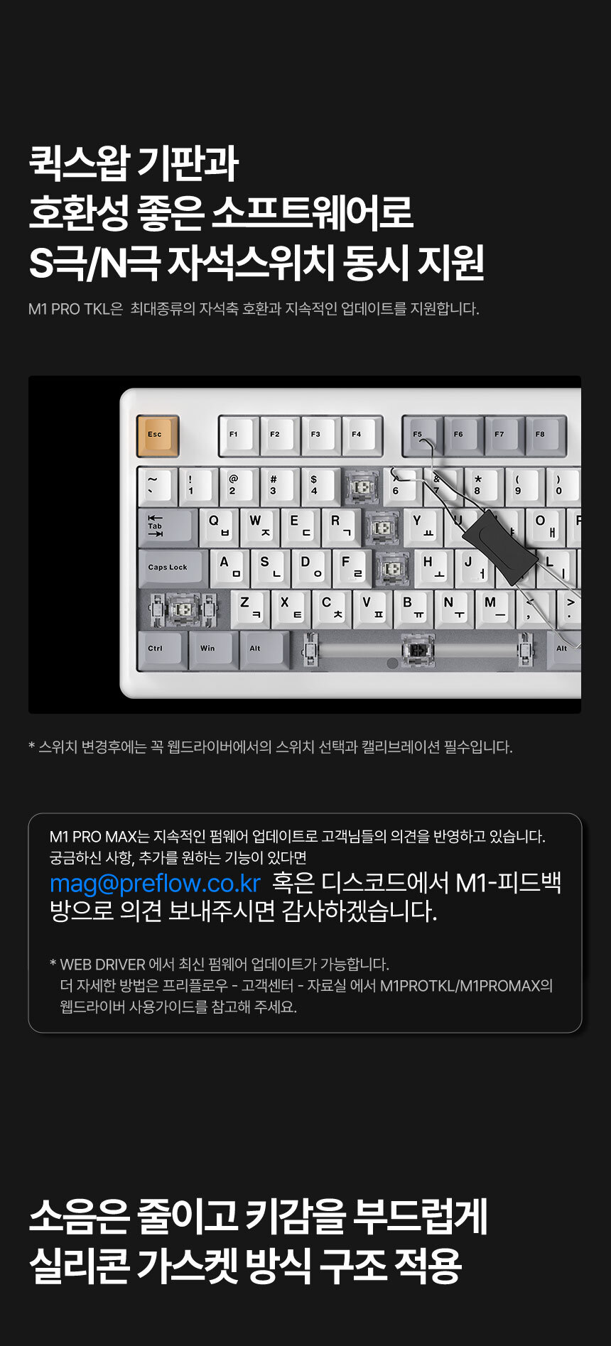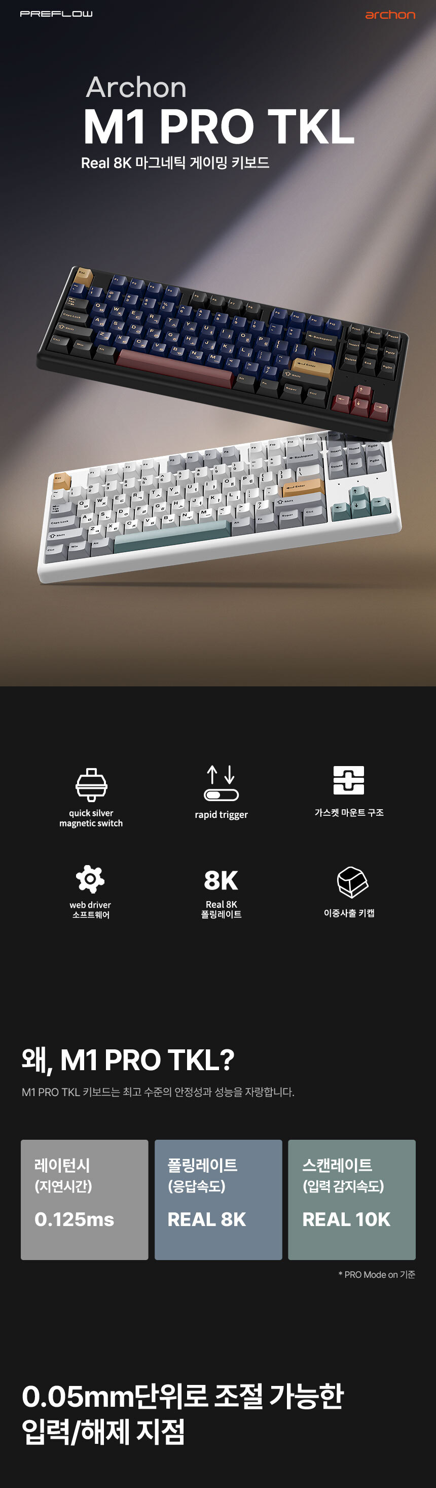 프리플로우 archon M1 PRO TKL 리얼 8K 마그네틱 키보드, 이클립스 저소음 퀵실버
