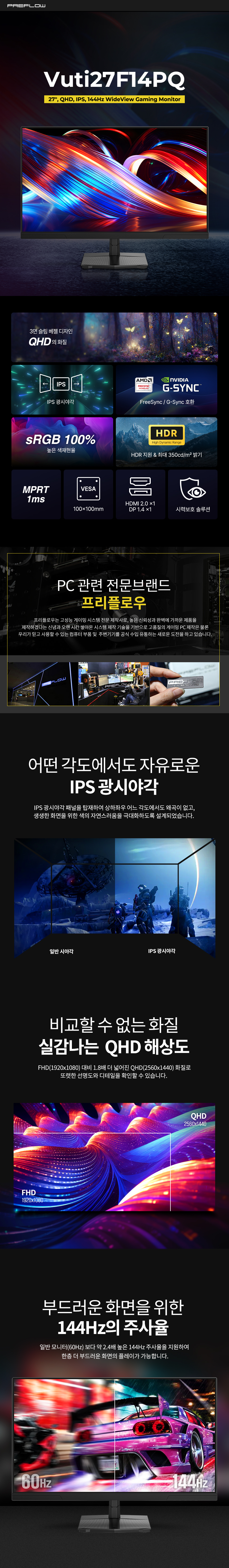 프리플로우 Vuti27F14PQ QHD IPS 144Hz 게이밍