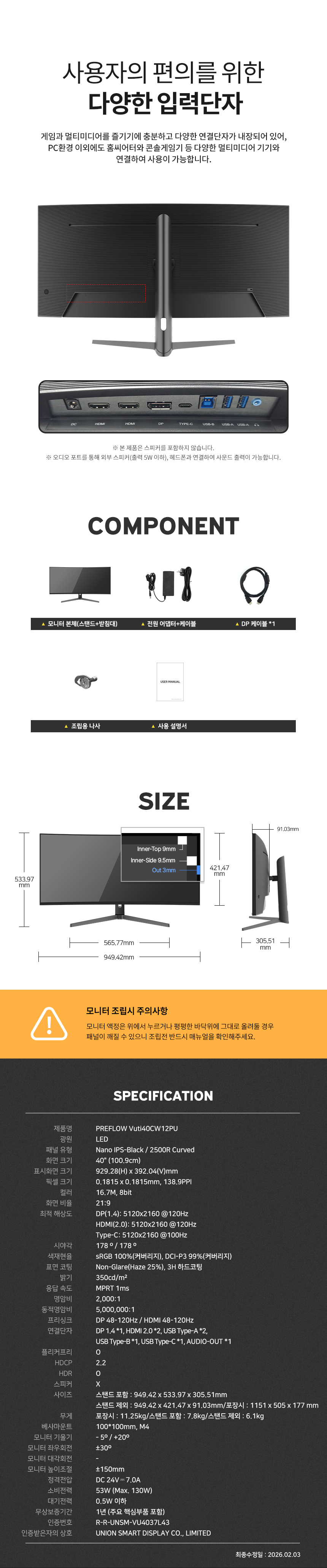 프리플로우 Vuti40CW12PU WUHD Nano IPS Black 120 게이밍