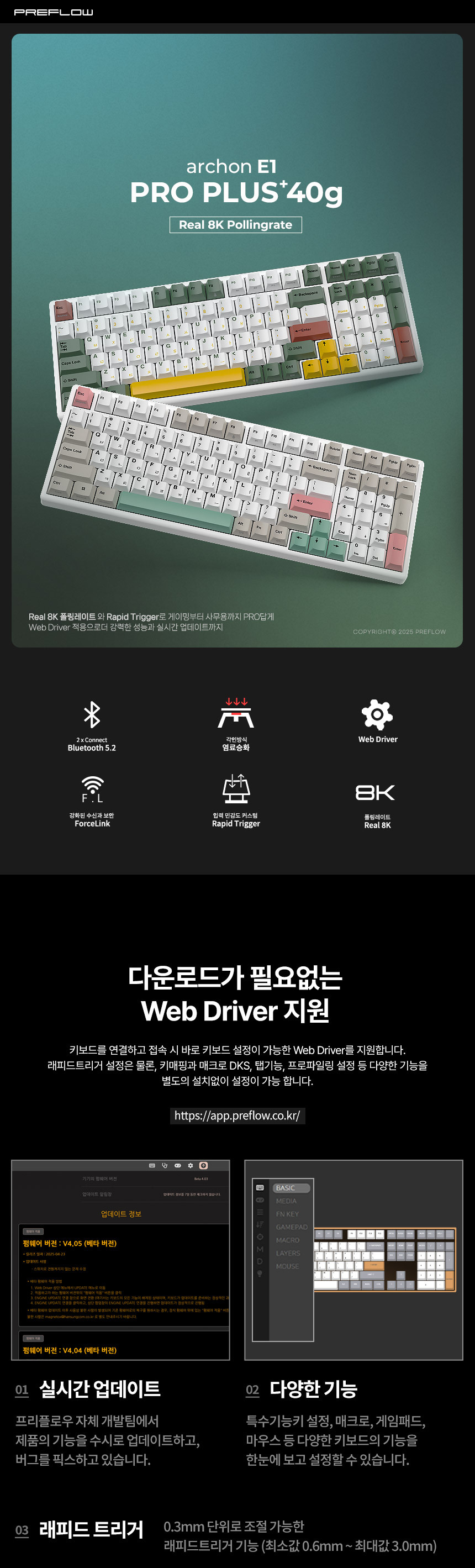 프리플로우 archon E1 PRO PLUS 8K 무접점키보드 솔져, 40G